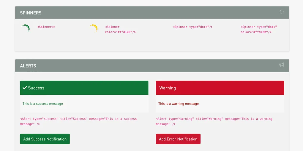 - Themed, branded components such as buttons and spinners